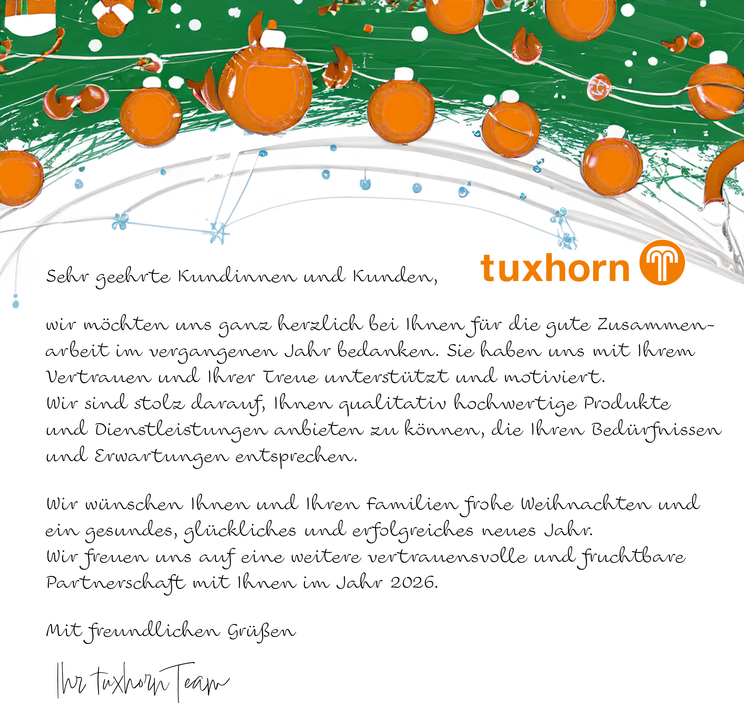 Der letzte Versandtag ist am 15.12.2026. Ab dem 05.01.2026 sind wir zu den gewohnten Zeiten wieder für Sie da.