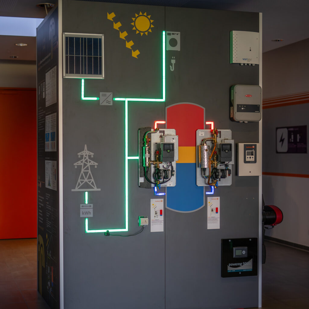 Ein intelligentes Power-to-Heat-System erkennt automatisch, wann PV-Überschuss vorhanden ist, und passt die Leistung stufenlos an. Die erzeugte Wärme wird gezielt im Pufferspeicher gespeichert und steht später für Heizung oder Warmwasser zur Verfügung.